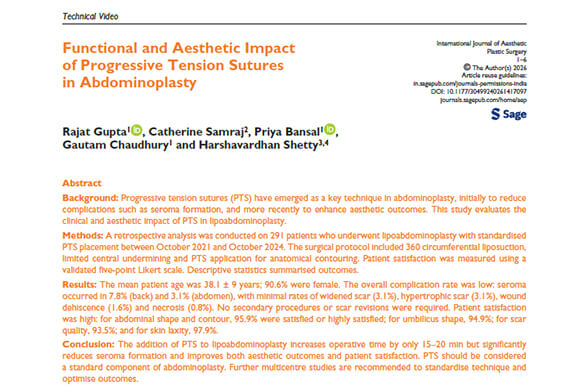This study evaluates the role of progressive tension sutures in lipoabdominoplasty, focusing on both functional and aesthetic outcomes. In a retrospective analysis of 291 patients, the use of standardized progressive tension sutures significantly reduced seroma formation while improving abdominal contour, waist definition, umbilical aesthetics, and scar quality. The technique added minimal operative time and showed low complication rates with high patient satisfaction. The findings support progressive tension sutures as an important component of modern abdominoplasty.